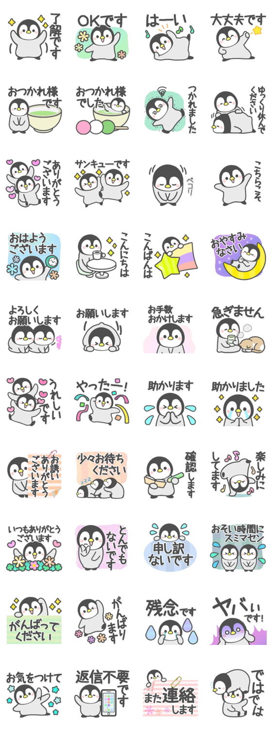 新作、lineスタンプ「ペンギンきょうだい・日常敬語」をリリースしました。 ペンギンのはーちゃん&くーちゃん、ヒヨコ達がお届けするにぎやかなスタンプ、敬語版です。 日常でよく使える敬語スタンプを詰め込みました。 ダウンロードはこちらまったり敬語ペンギン lineクリエイターズスタンプ ≫ lineで使えるスタンプを紹介 スタンプひろば Suicaのペンギン 期間限定LINEスタンプ登場! (年12月15日)|BIGLOBEニュースまったり敬語ペンギン LINEクリエイターズスタンプ クリエイター:DECOR 価格:100円 このスタンプをシェア ワード:カワイイ, ペンギン, まったり敬語ペンギンのスタンプ一覧と説明 かわいいペンギンさんが、柔らかな敬語で返事してくれるスタンプです! お友達や目上の方にも♪